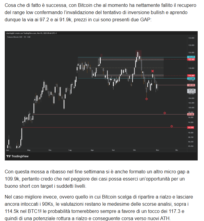Il primo target a 103.8k è stato raggiunto e ampiamente superato, ma Bitcoin ha deciso di tentare un’inversione del bear trend prima di toccare il successivo, ovvero il GAP a 97.2k, e ripartire dunque almeno per il GAP a 109.9k che è di fatto il livello decisivo al momento.