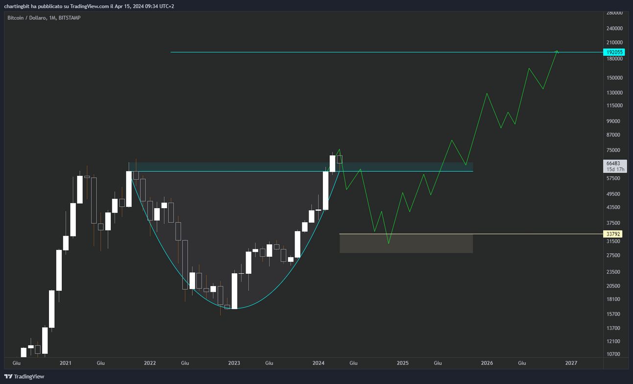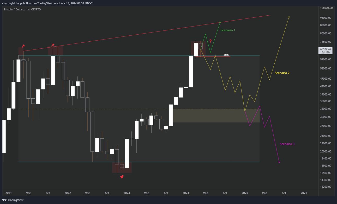 Ne riparlo oggi perchè ancora non sono affatto convinto che questa possibilità possa avverarsi, tuttavia se Bitcoin dovesse rompere il bull-trend HTF chiudendo sotto i 60.8k ed entrare in un mini bear market nei prossimi mesi sarò costretto a rivalutare e a considerare probabile questo scenario, come possibilità migliore, perchè nessuno vieta che il mercato termini la sua corsa qui e torni intorno ai 16k!