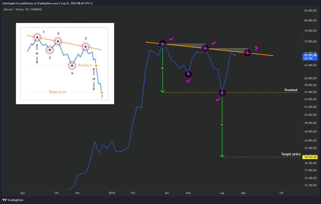 Questo è un pattern non troppo comune, soprattutto su Bitcoin e in particolare durante la formazione dei top, dove non si è mai formato.