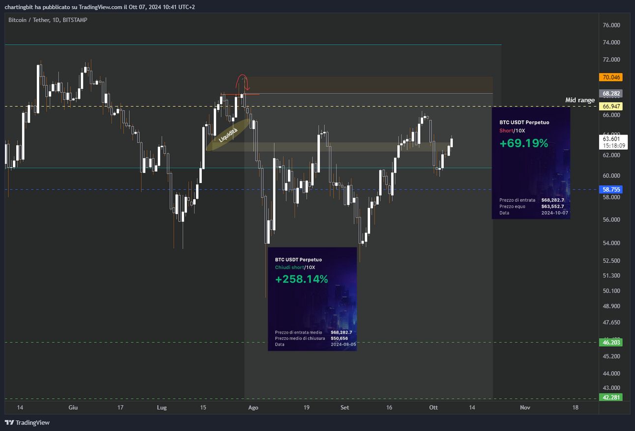 Personalmente ho anche tentato un long, perchè l’idea mi piaceva e perchè i 60.8k sono uno dei livelli più importanti in assoluto in questa zona di prezzo: